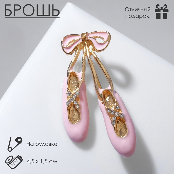 Брошь «Пуанты» балерины, цвет бело-розовый в золоте