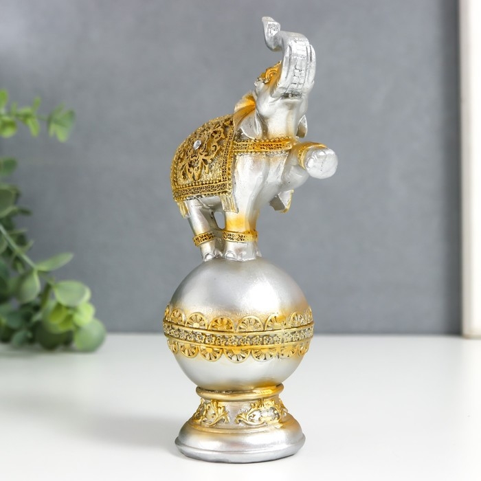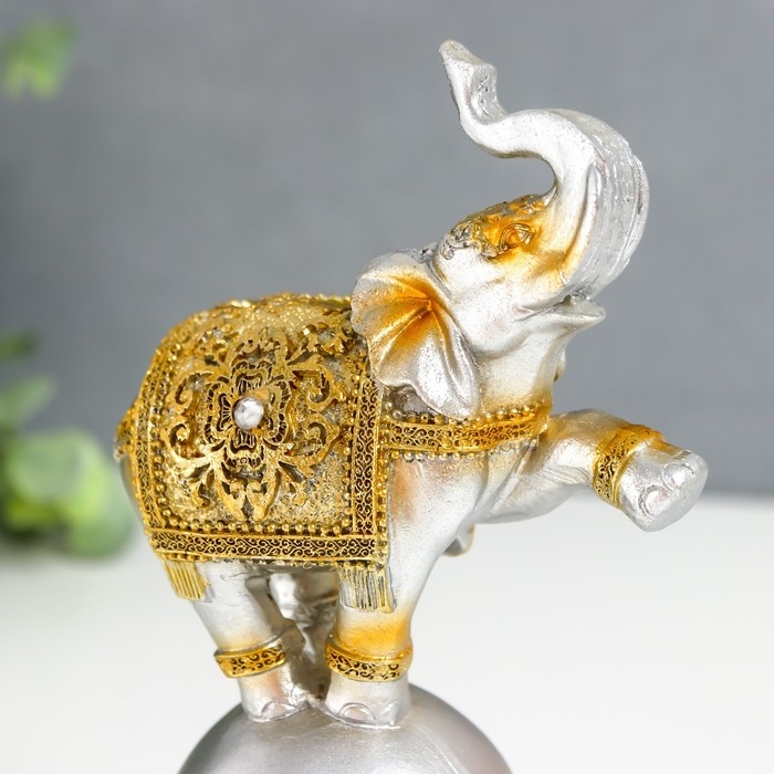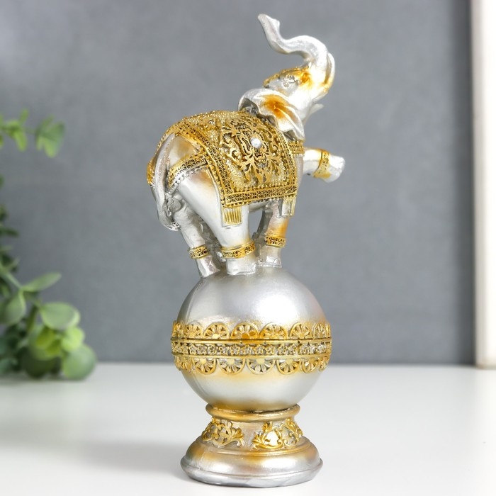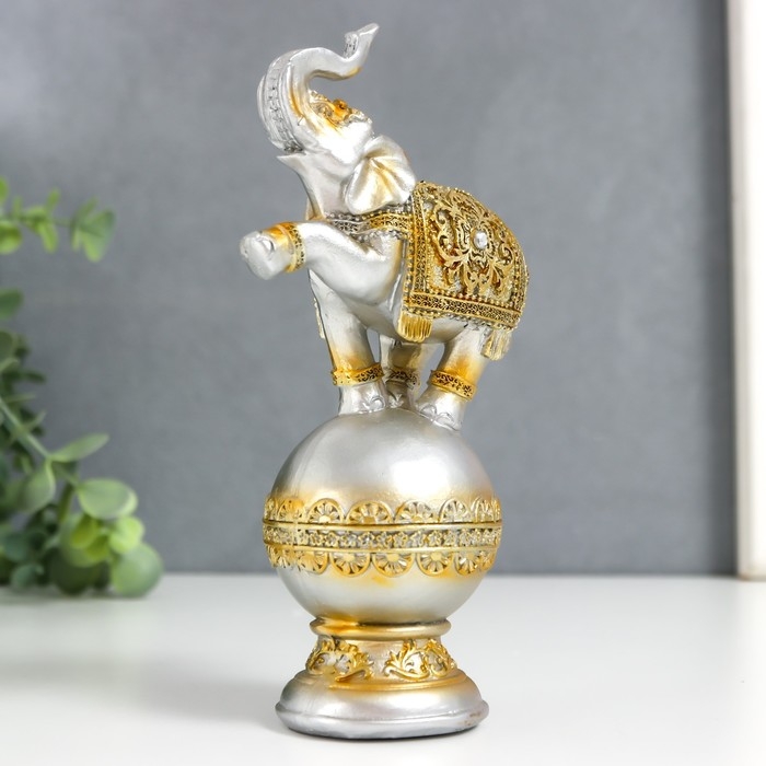 Сувенир полистоун "Слон на шаре в ажурной попоне" 19х8,5х5,5 см