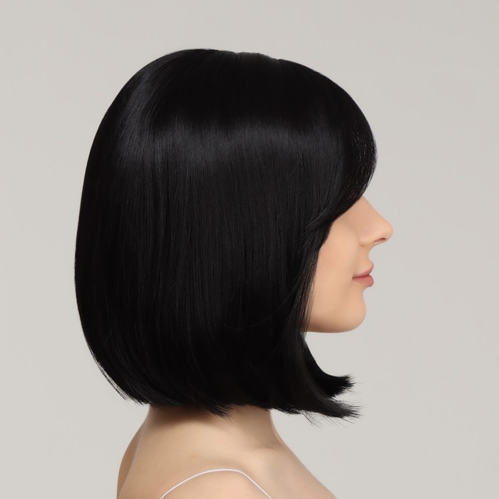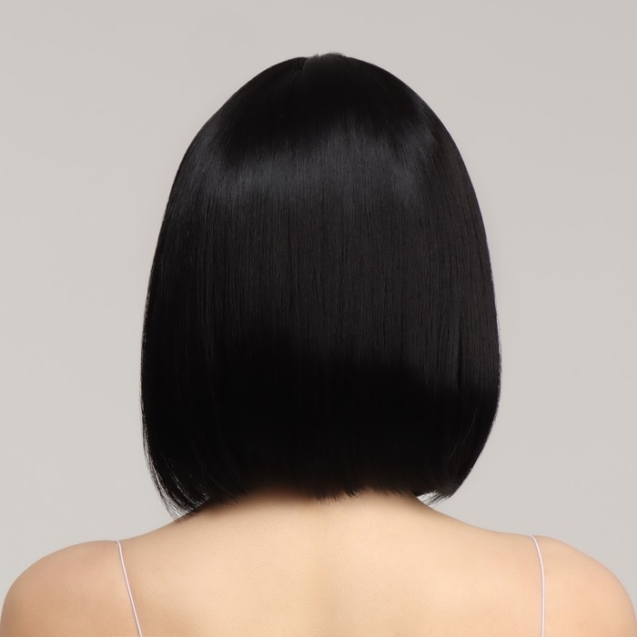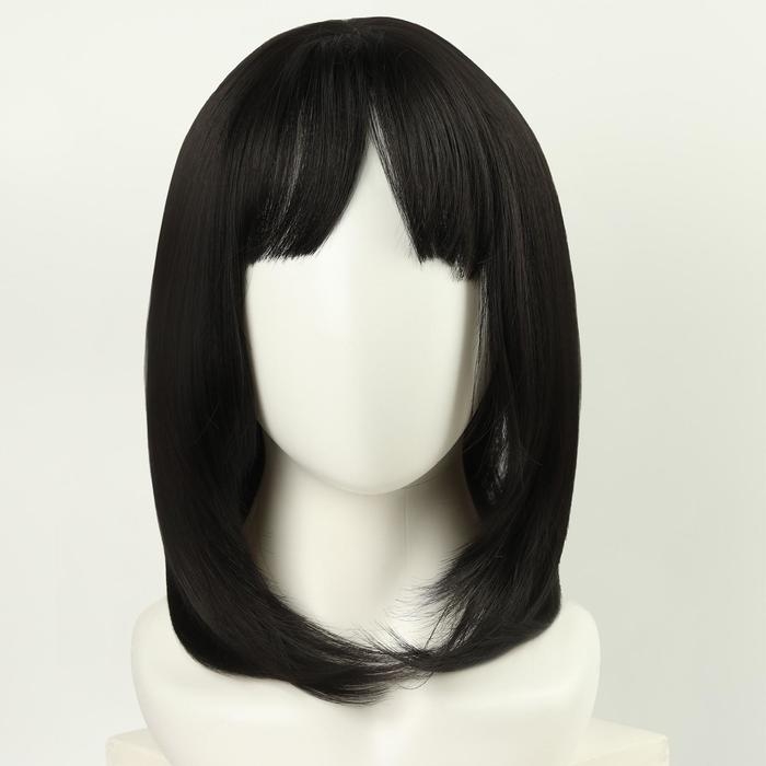 Парик искусственный, с чёлкой, имитация кожи, 30 см, 160 гр, цвет чёрный(#SHT3)