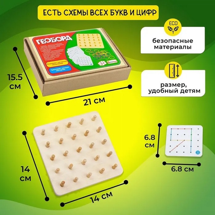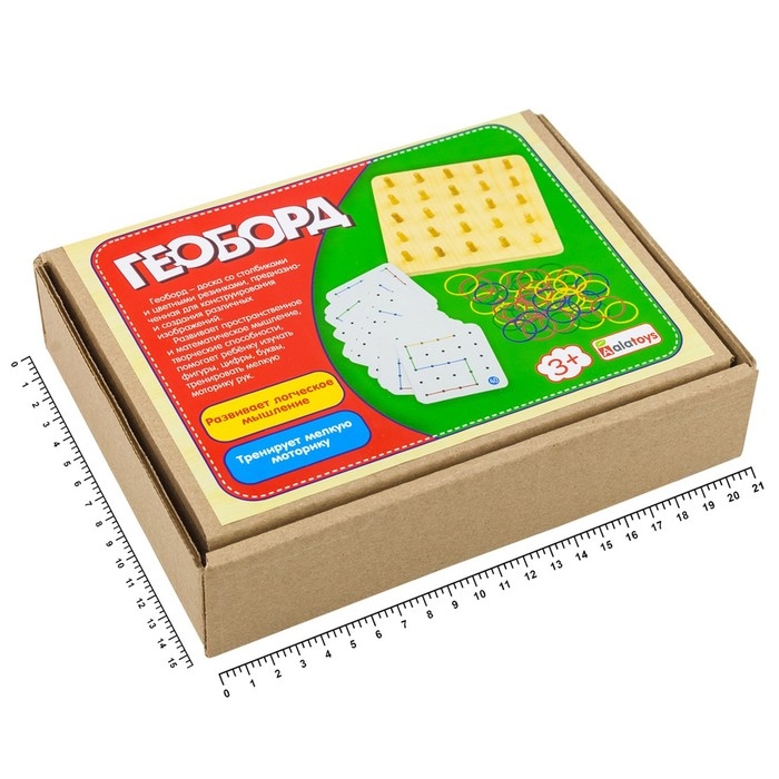 Геоборд основание, инструкция, 20 двусторонних карточек, 50 резинок, 14 × 14 × 2.5 см