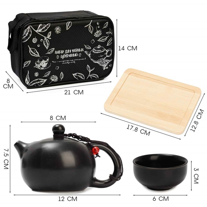 Набор для чайной церемонии 5 предметов на 3 персоны: чашка 50 мл, чайник 280 мл, черный