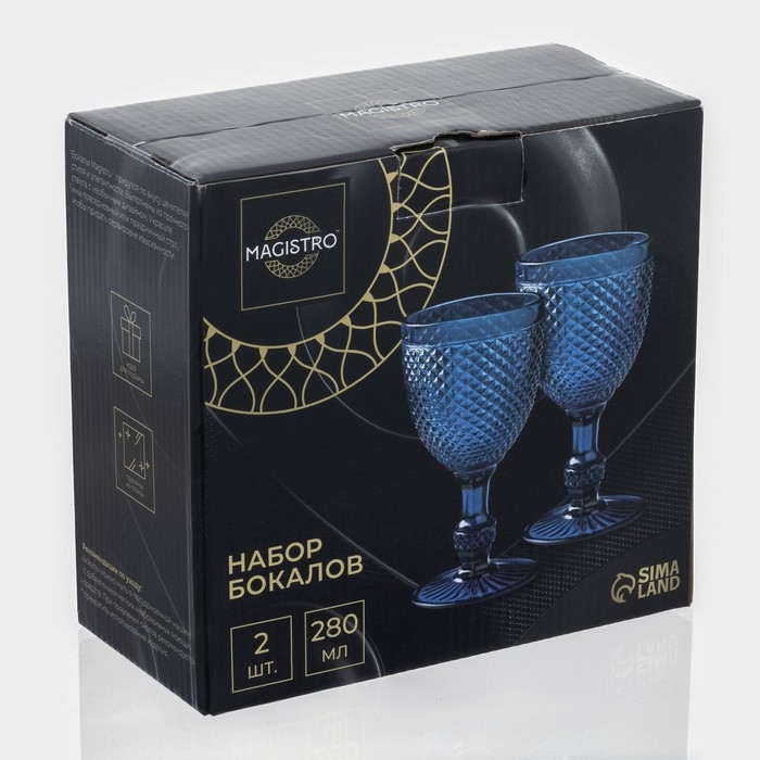 Набор бокалов из стекла Magistro «Вилеро», 280 мл, 2 шт, цвет синий