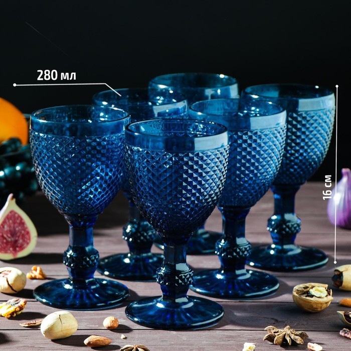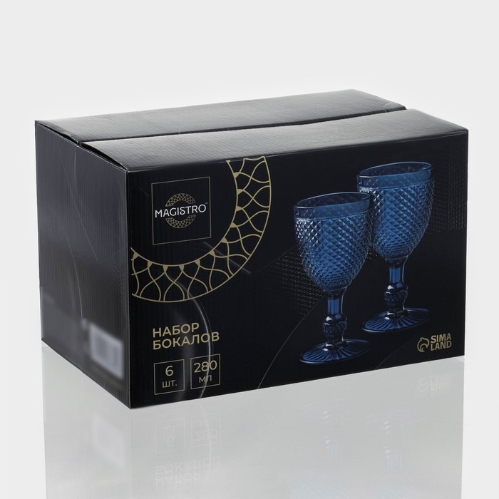 Набор бокалов из стекла Magistro «Вилеро», 280 мл, 6 шт, цвет синий