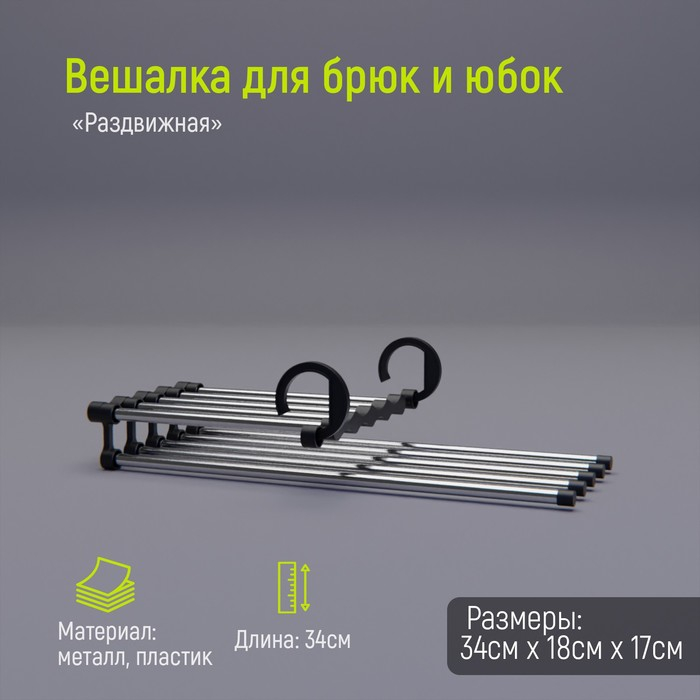 Вешалка для брюк и юбок Доляна, 34×18×17 см, 5 спиц, раздвижная, цвет хромированный
