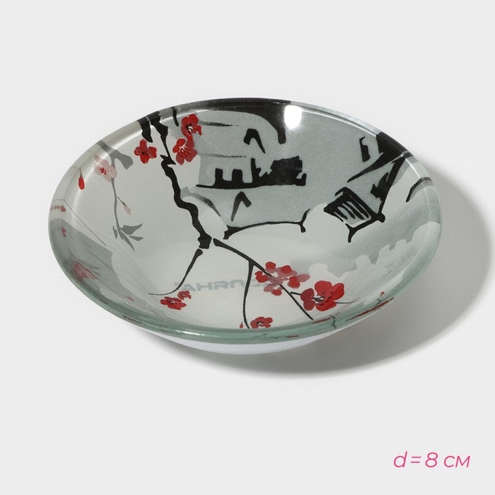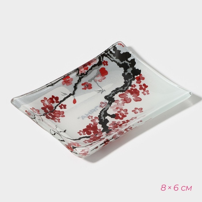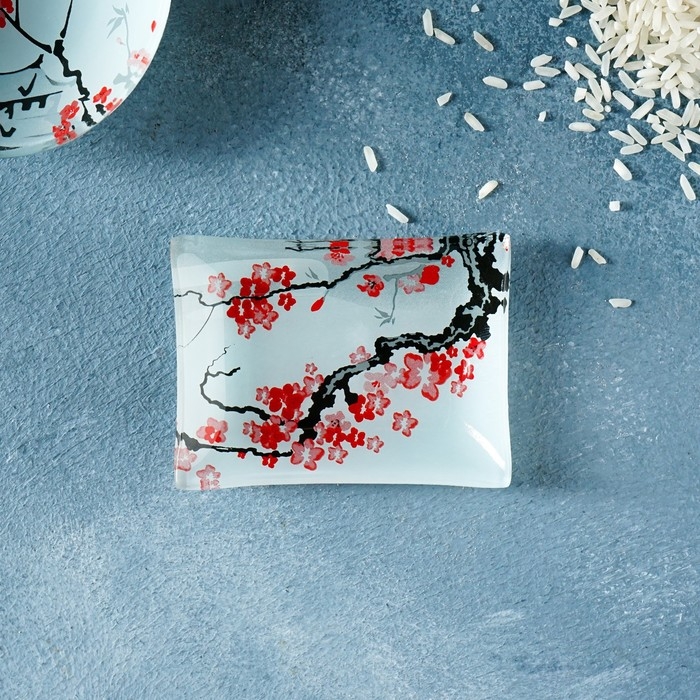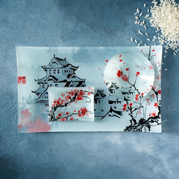 Набор для суши из стекла Доляна «Фудзияма», 3 предмета: соусники 8×2 см, 8×6 см, подставка 25×15×2 см
