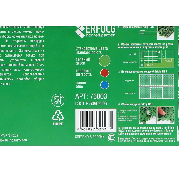 Универсальное покрытие "ERFOLG H & G", 33 х 33 см, цвет зеленый, набор, 9 шт.