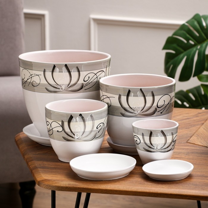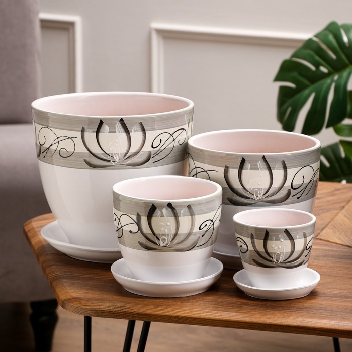 Набор горшков цветочных 4 шт. Лотос белый 0,4 / 1 / 2,5 / 5 л