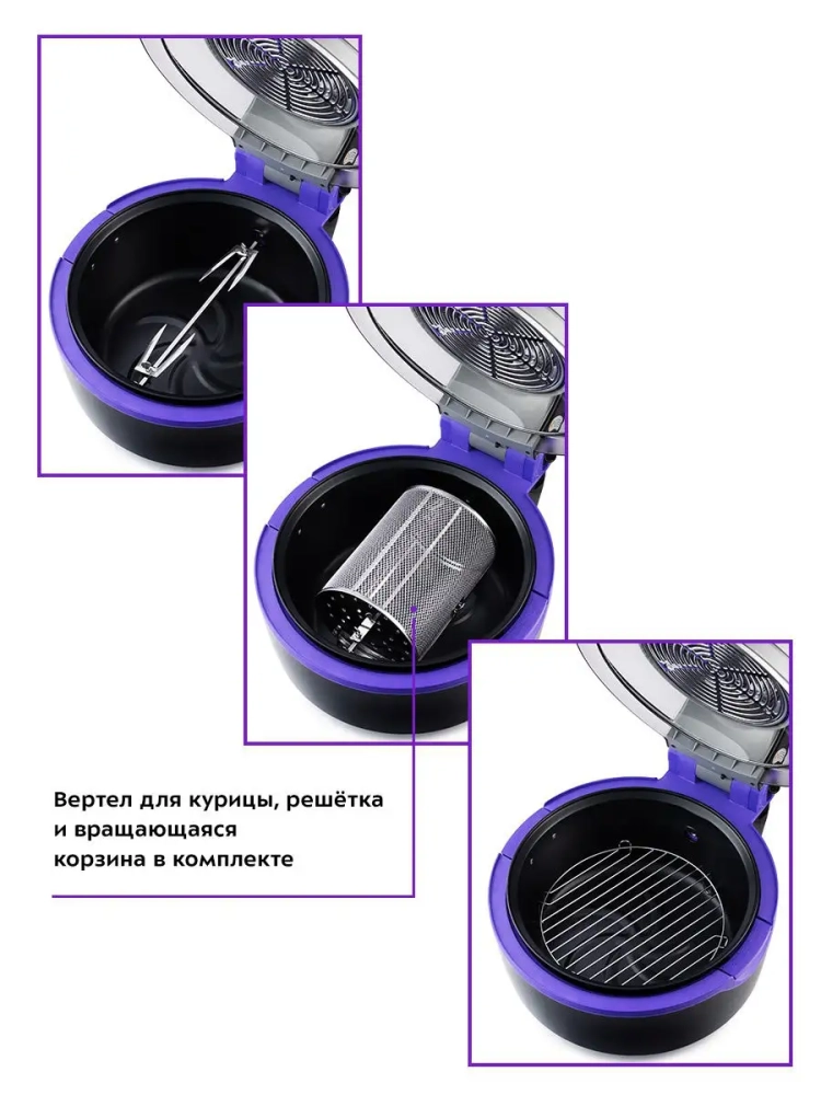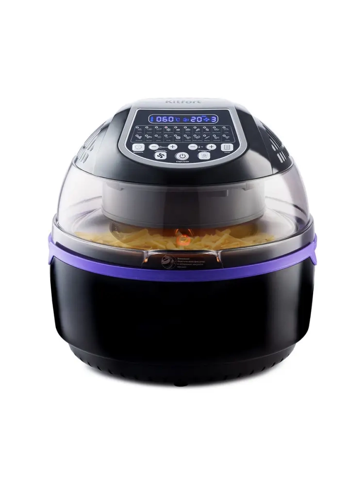 Аэрогриль электрический Kitfort КТ-2219 — это современный прибор, который станет незаменимым помощником на вашей кухне. С его помощью можно готовить разнообразные блюда без добавления масла, что делает их более полезными и вкусными. Этот электрический аэрогриль оснащен электронным управлением и дисплеем, что упрощает процесс приготовления. Идеальный подарок на любой случай: на Новый год, 23 февраля, 8 марта, день рождения, свадьбу или юбилей! В комплекте с прибором идут вертел для курицы, щипцы для продуктов и решетка. Объем чаши составляет 8 литров, что позволяет готовить большие порции за один раз. Галогеновая лампочка в центре ТЭНа подсвечивает продукты в чаше во время приготовления, а прозрачная часть крышки дает возможность наблюдать за процессом без необходимости открывать аэрогрильницу. Вращающаяся корзина крепится к вертелу с помощью специального винта и идеально подходит для приготовления картошки-фри или курицы на гриле. Ножки с присосками обеспечивают устойчивость прибора при открывании крышки. По окончании процесса аэрогриль автоматически отключается, что делает его использование безопасным и удобным. Этот электро прибор от Kitfort имеет 20 автоматических программ для различных блюд: от мяса до овощей. Решетка позволяет располагать продукты или термостойкие чаши прямо внутри грильницы. Поддон собирает излишки жира и жидкости во время готовки, облегчая чистку после использования. Настольный электрогриль Kitfort КТ-2219 — это идеальное решение для тех, кто ценит качество и удобство на своей кухне.