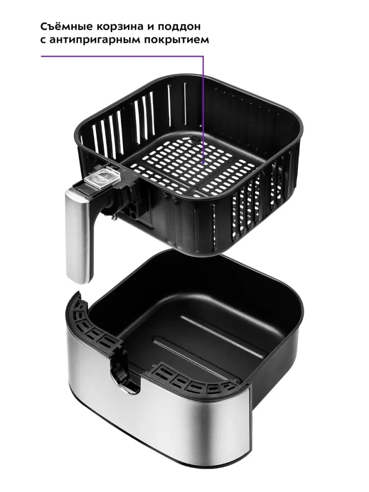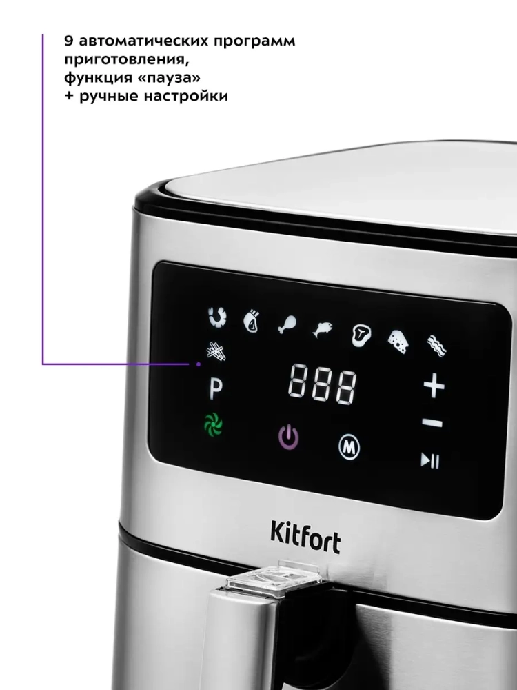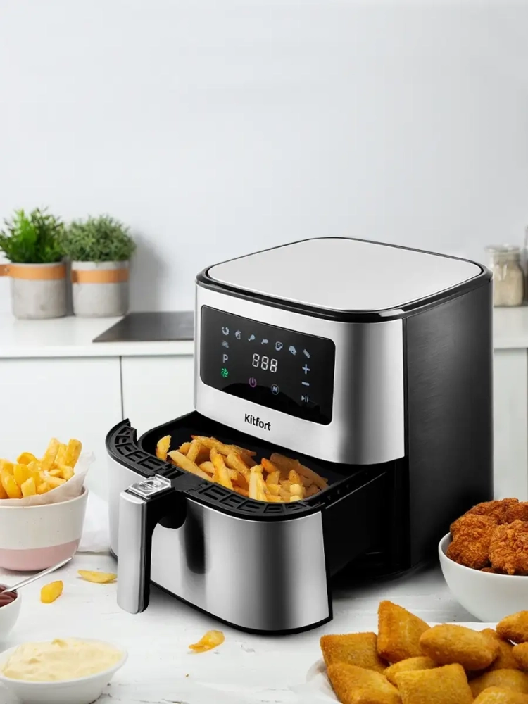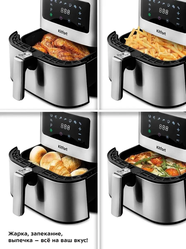 Аэрогриль электрический Kitfort КТ-2228 — это многофункциональный бытовой прибор, который станет незаменимым помощником на вашей кухне. С его помощью вы сможете готовить разнообразные блюда, такие как пицца, курица или рыба, без использования масла. Это делает пищу более здоровой и полезной. Идеальный подарок на любой случай: на Новый год, 23 февраля, 8 марта, день рождения, свадьбу или юбилей! Аэрогриль Kitfort оснащен системой циркуляции горячего воздуха, что позволяет продуктам равномерно обжариваться со всех сторон и оставаться нежными внутри с хрустящей корочкой снаружи. Этот электрический аэрогриль имеет объем 5.5 литра и мощность 1700 Вт, что обеспечивает быстрое приготовление блюд. Он может использоваться не только как аэрогриль, но и как аэрофритюрница, гриль или духовка благодаря наличию девяти автоматических программ и возможности ручных настроек. Сенсорное управление упрощает процесс выбора нужного режима работы. Kitfort КТ-2228 - это техника, которая идеально подходит для кухни любого размера благодаря своему стильному дизайну и компактным габаритам. Продукты готовятся в специальной корзине с антипригарным покрытием, которая легко вынимается для мытья после использования. Электрогриль автоматически отключается по окончании приготовления пищи, обеспечивая безопасность эксплуатации прибора на кухне. Благодаря вентилятору все блюда готовятся равномерно без риска непропеченных мест. Этот кухонный прибор от Kitfort станет отличным выбором для тех, кто ценит удобство и качество в приготовлении еды дома.