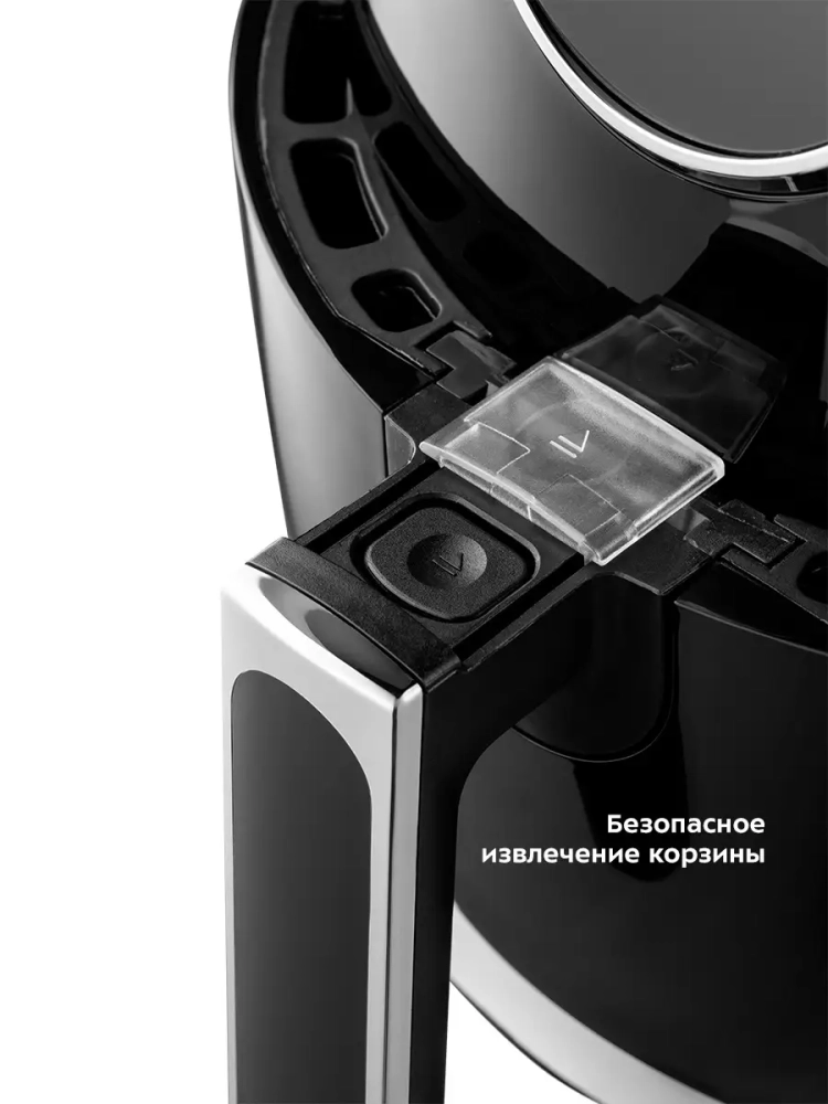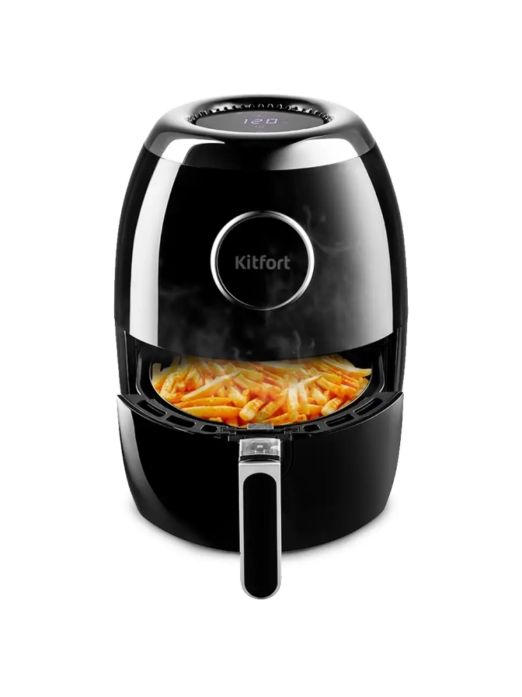 Аэрогриль Китфорт оснащен сенсорным управлением, он имеет 7 автоматических программ и программу с настройками вручную. Программы позволяют использовать готовые шаблоны настроек, разработанные специально под конкретные блюда, поэтому вам не придется контролировать процесс приготовления самостоятельно — аэрогриль сам выберет необходимые параметры своей работы. На дисплее по очереди отображаются температура и время приготовления. Продукты готовятся в специальной корзине, вставленной в поддон. И корзина и поддон с антипригарным покрытием. По окончании приготовления аэрогриль автоматически отключается. Поддон с корзиной легко вынимаются и моются.