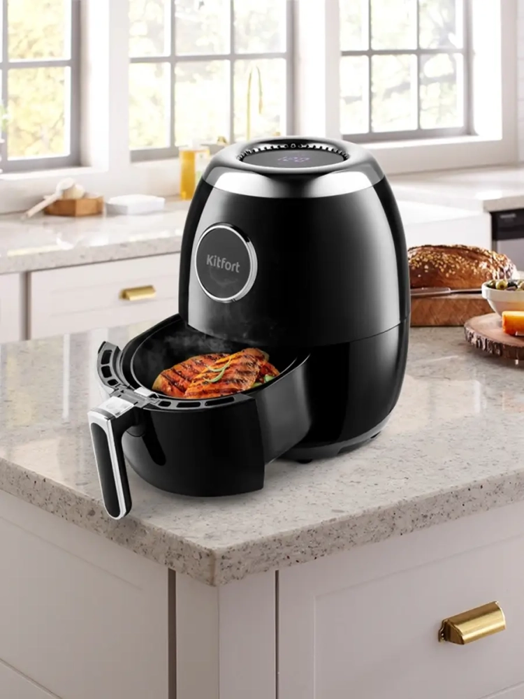 Современный аэрогриль Kitfort КТ-2234 интересен не только стильным дизайном: он может использоваться как аэрогриль, а также как аэрофритюрница и духовка.
