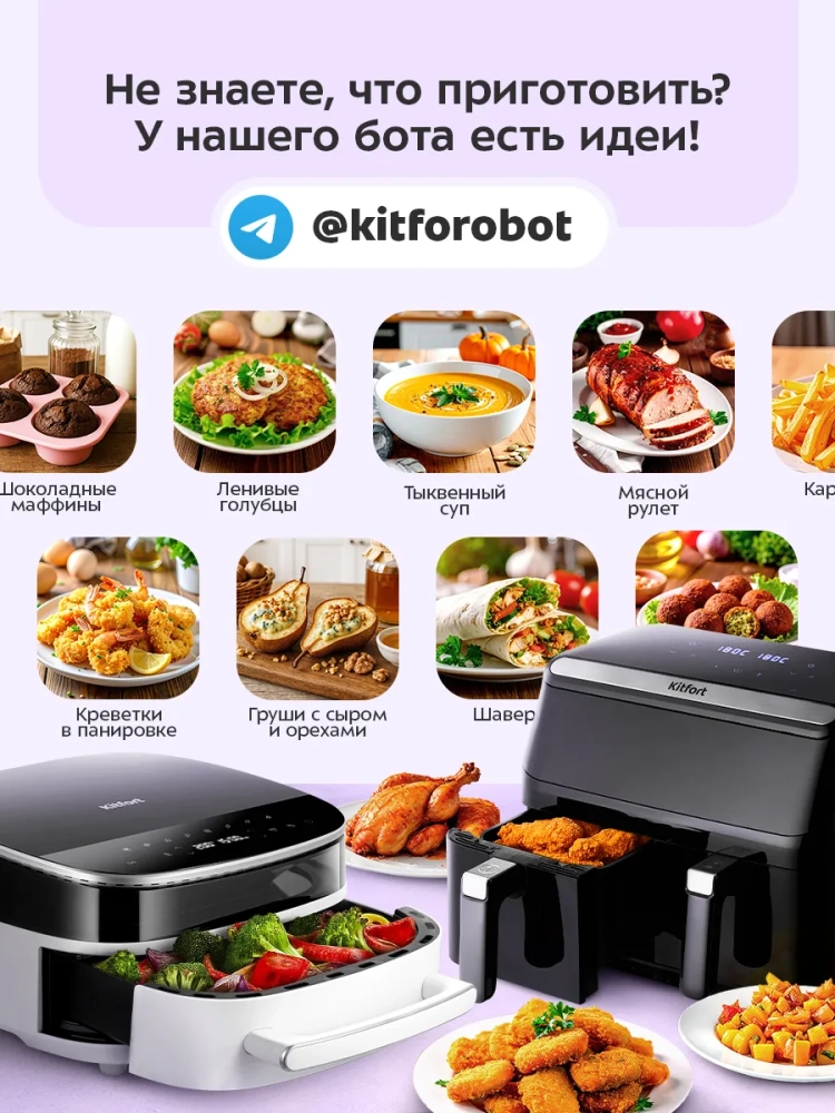 Аэрогриль электрический Kitfort КТ-2264 — это современное кухонное устройство для приготовления пищи, которое позволяет готовить большинство продуктов без добавления масла. Благодаря этому аэрогрилю блюда получаются сочными и с хрустящей корочкой. Объем поддона составляет 1,9 литра, что делает его идеальным для небольшой семьи или использования на кухне в условиях ограниченного пространства. Электрический аэрогриль оснащен системой циркуляции горячего воздуха, которая обеспечивает равномерное обжаривание продуктов со всех сторон. Это позволяет получить нежные внутри и хорошо запеченные снаружи блюда. Продукты готовятся на специальной решетке с антипригарным покрытием, что предотвращает пригорание и облегчает процесс очистки после использования. Управление устройством механическое: можно установить температуру от 80 до 200 °С и время приготовления до 60 минут. По окончании процесса аэрогриль автоматически отключается, обеспечивая безопасность эксплуатации. Этот электрогриль идеально подходит для тех, кто ценит удобство и качество приготовления пищи на своей кухне без лишних усилий. Поддон емкостью в почти два литра легко вынимается для мытья после использования вместе с решеткой. Аэрогриль Kitfort КТ-2264 — это не только функциональный прибор для вашей кухни, но также стильный элемент интерьера благодаря своему современному дизайну.