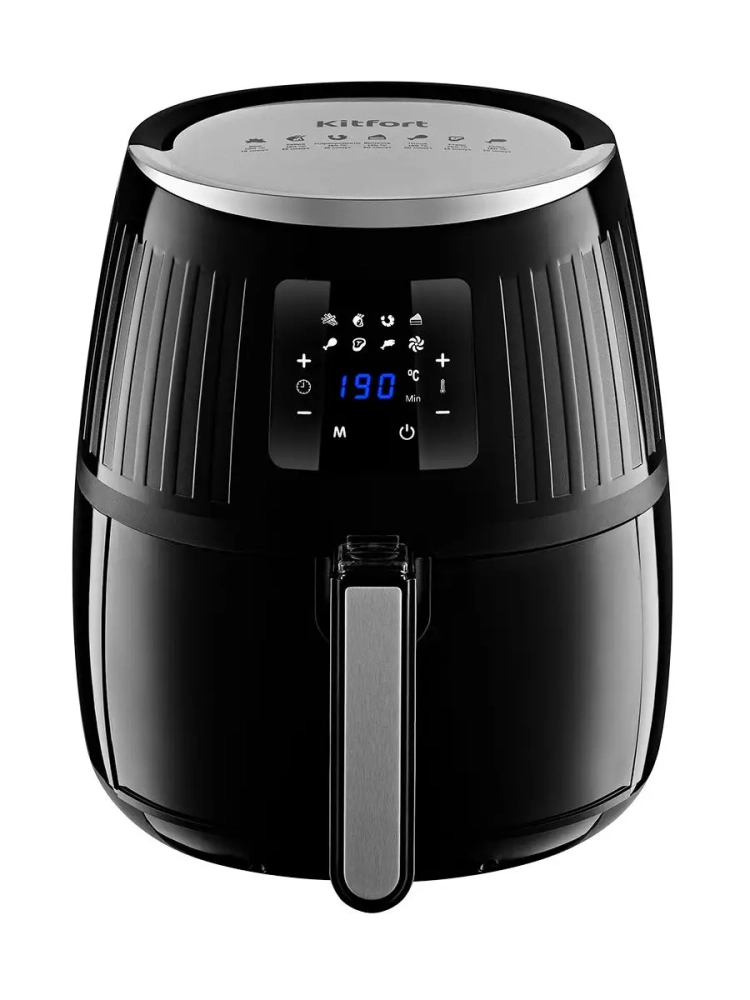 Современный аэрогриль Kitfort КТ-2226 интересен не только стильным дизайном: он может использоваться как аэрогриль, а также как аэрофритюрница и духовка. Для приготовления продуктов в аэрогриле не нужно масло, а если хочется его добавить, например, для создания очень хрустящей корочки или для ароматизации масляно-травяной смесью, то можно просто слегка смазать курицу, рыбу или отбивную с помощью силиконовой кисточки. Так вы получаете более здоровую и полезную пищу. Аэрогриль оснащен сенсорным управлением, он имеет 7 автоматических программ и программу с ручными настройками. На дисплее попеременно отображаются температура и время приготовления. Продукты готовятся в специальной корзине, вставленной в поддон. И корзина и поддон с антипригарным покрытием. По окончании приготовления аэрогриль автоматически отключается. Поддон с корзиной легко вынимаются и моются.