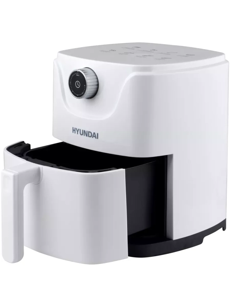 Аэрогриль Hyundai HYF-2052 1000Вт белый/серебристый. Аэрогриль имеет регулировку времени приготовления, вам не придётся контролировать процесс приготовления, температура готовки постоянная - 180°С. Мощный аэрогриль позволяет готовить большинство продуктов с минимальным количеством масла или совсем без добавления масла. Съёмный поддон имеет антипригарное покрытие, благодаря чему он легко отмываются после использования. Благодаря системе циркуляции горячего воздуха, продукты обжариваются равномерно со всех сторон, получаясь при этом нежными внутри и с хрустящей корочкой снаружи.
