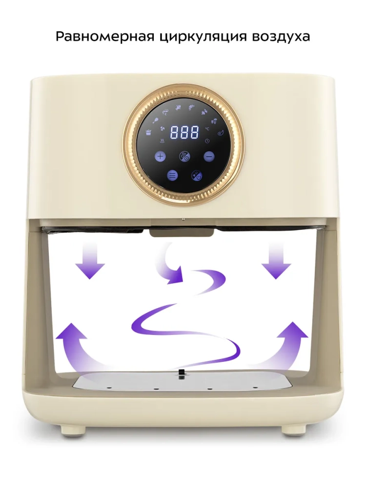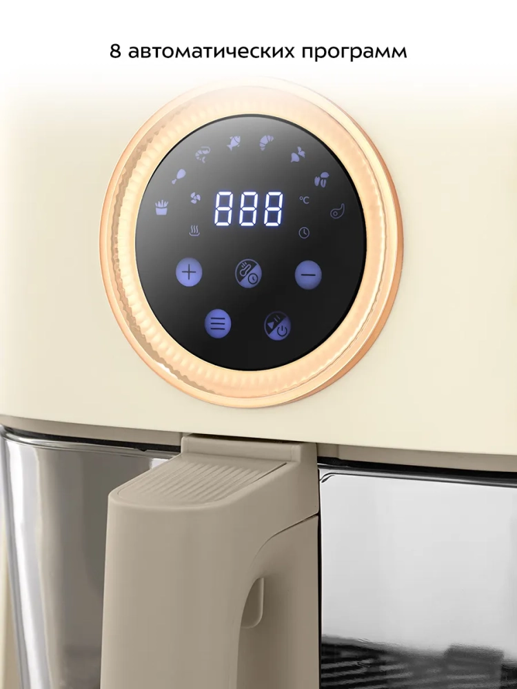 Аэрогриль электрический Kitfort КТ-2258 — это идеальное прибор для вашей кухни, позволяющее готовить вкусные и полезные блюда без лишнего масла. С его помощью вы сможете приготовить большинство продуктов с хрустящей корочкой и сочной серединой благодаря системе циркуляции горячего воздуха. Этот аэрогриль станет незаменимым кухонным помощником в вашем доме, обеспечивая равномерное приготовление пищи без необходимости постоянного контроля. С емкостью чаши 4 литра, аэрогриль позволяет готовить большие порции за один раз. Чаша выполнена из стекла, что дает возможность наблюдать за процессом приготовления. Встроенный нагреватель подсвечивает продукты в чаше, создавая дополнительный комфорт при использовании устройства на кухне. Электрический аэрогриль оснащен сенсорным управлением и дисплеем, который отображает температуру и время приготовления. Вы можете выбрать одну из 8 автоматических программ для различных блюд — от курицы до рыбы или овощей. Это упрощает процесс готовки: достаточно выбрать нужную программу и наслаждаться результатом. Решетка внутри чаши легко снимается для удобства мытья после использования. Аэрогриль автоматически отключается по окончании программы приготовления, что делает его безопасным в эксплуатации даже при отсутствии вас дома. Температурный диапазон от 60 до 200 °С регулируется с шагом в 5 °С, а таймер позволяет установить время от 1 до 60 минут с шагом в одну минуту. Этот электрический аэрогриль станет отличной техникой для вашего дома или дачи благодаря своей функциональности и простоте использования.