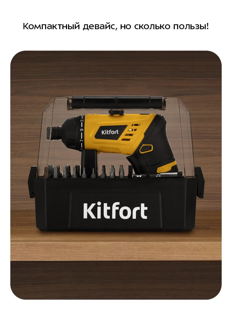 Аккумуляторная отвертка КТ-6492 поможет вам легко и быстро провести мелкие ремонтные работы или собрать мебель, а также просверлить отверстия благодаря специальному режиму сверления.