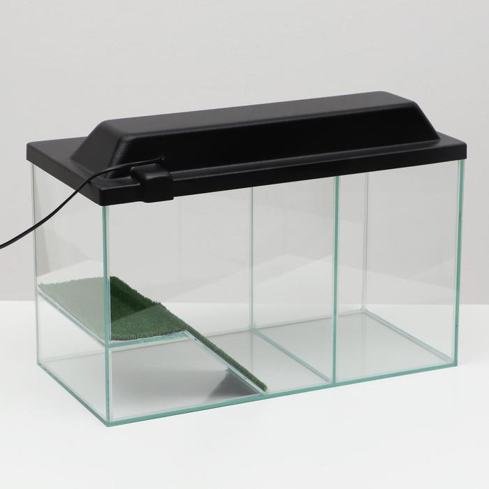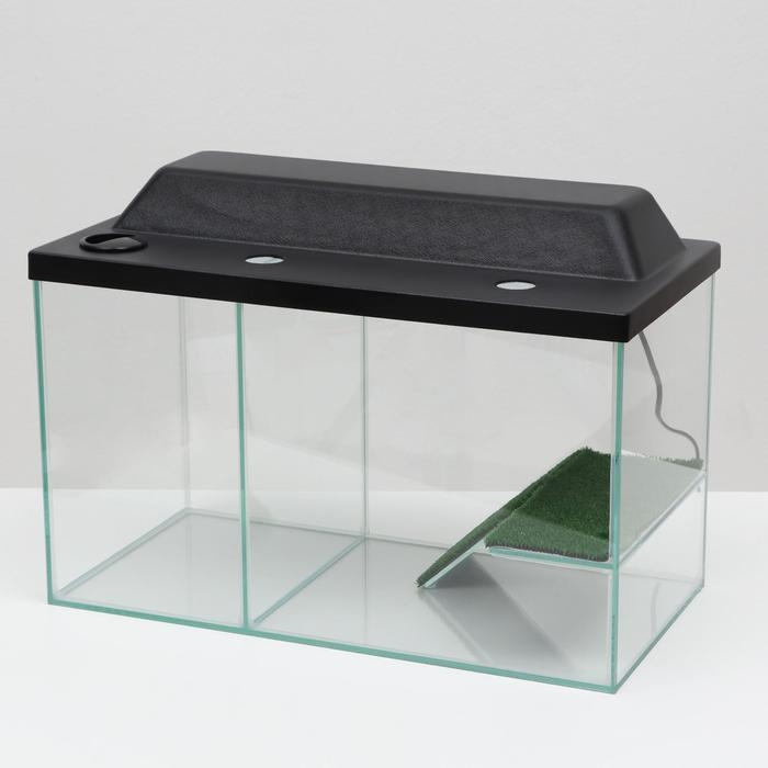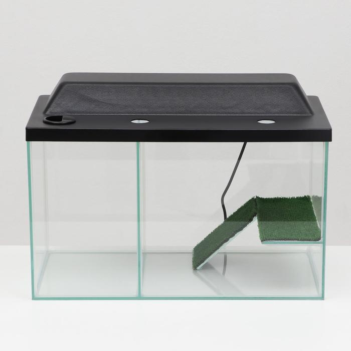 Аквариум - террариум с крышкой и мостиком, 35 литров, 50 x 25 x 30 см, черный