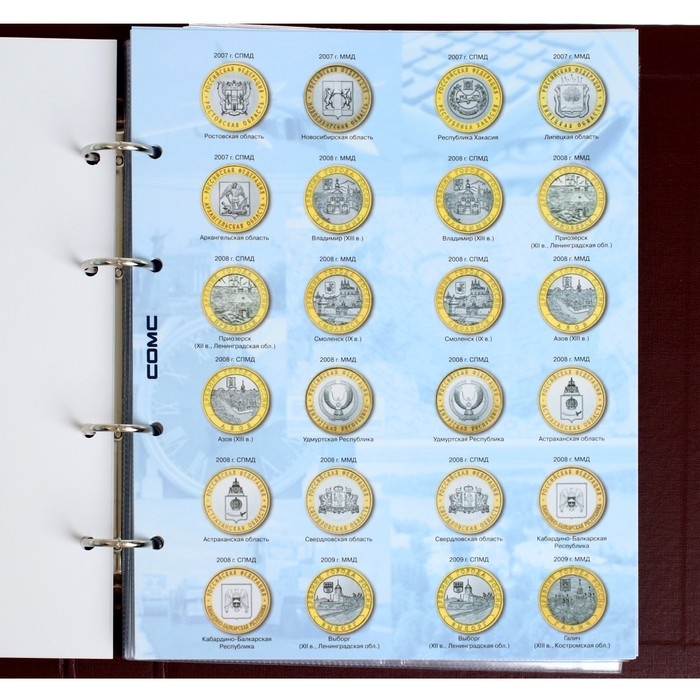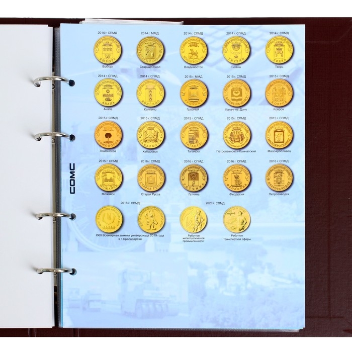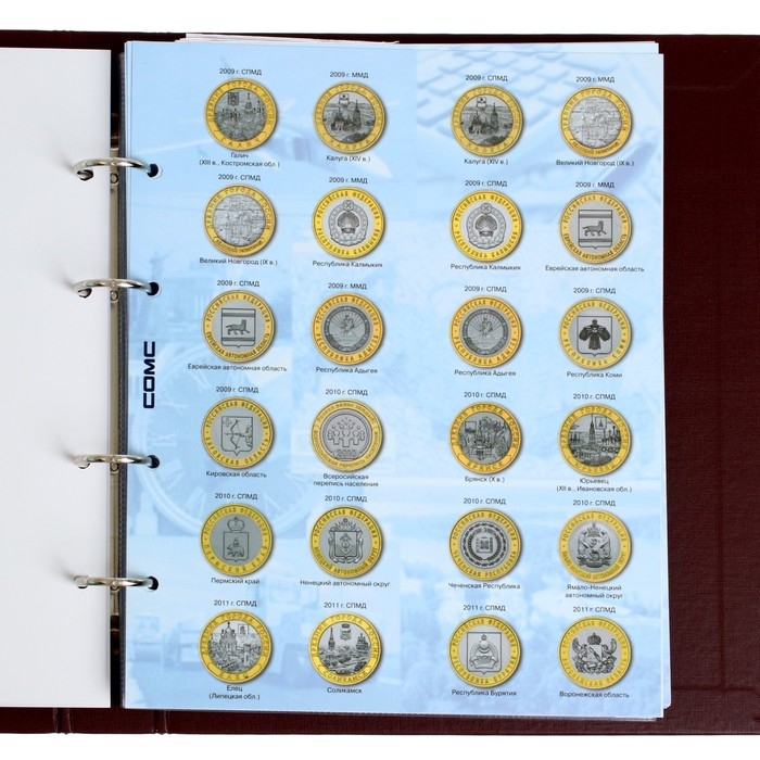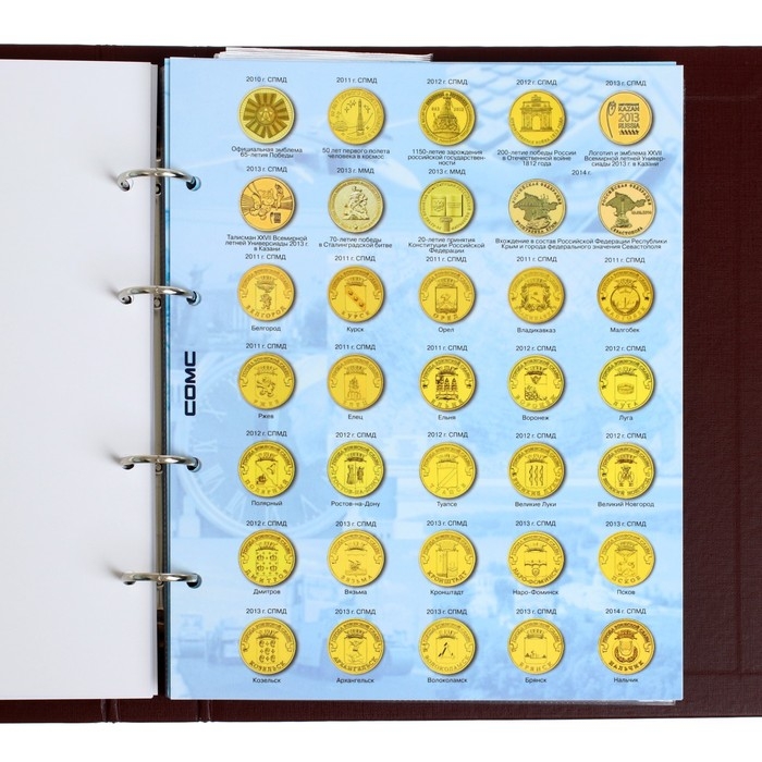 Альбом вертикальный (СТАНДАРТ) 230 х 270, для юбилейных 10-ти рублевых монет России.
