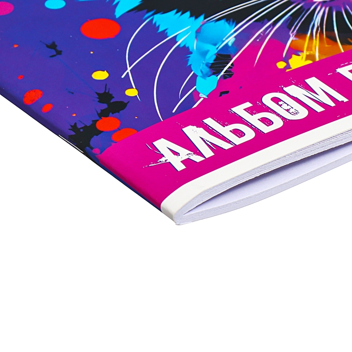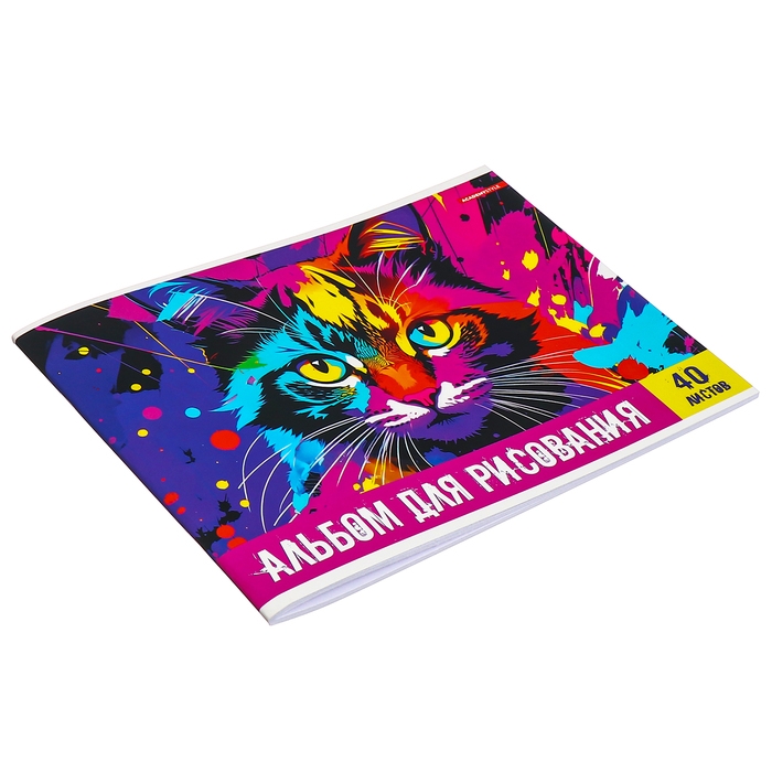 Альбом для рисования А4, 40 листов на скобе "Яркий кот", обложка мелованный картон, SoftTouch, блок 100 г/м2
