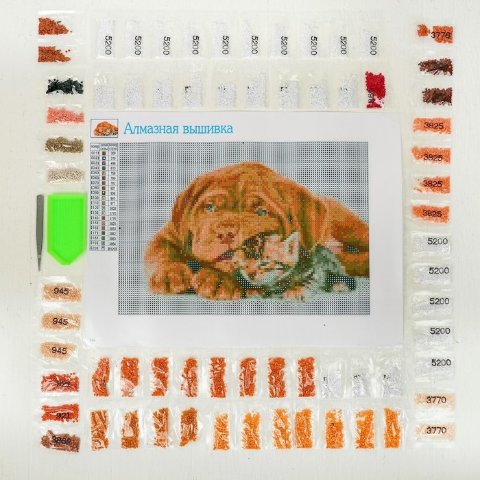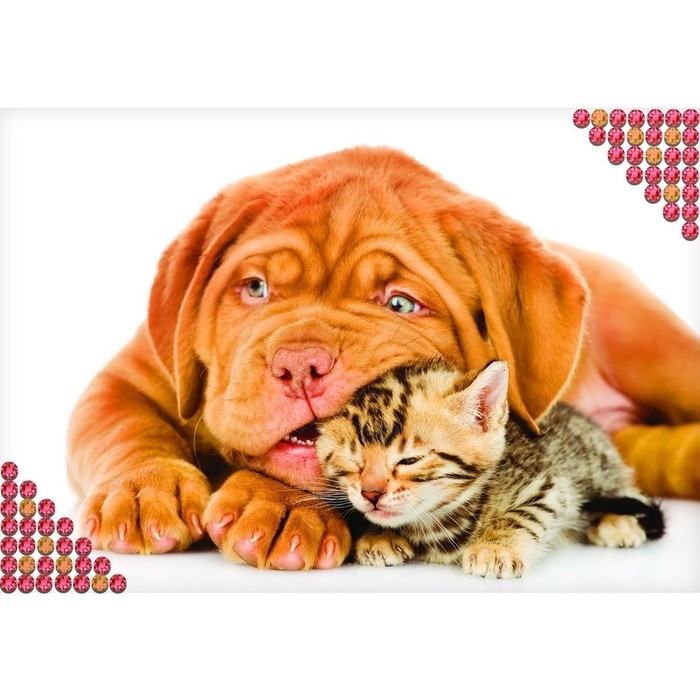 Алмазная мозаика «Котёнок и щенок», с полным заполнением на холсте, 22 × 32 см