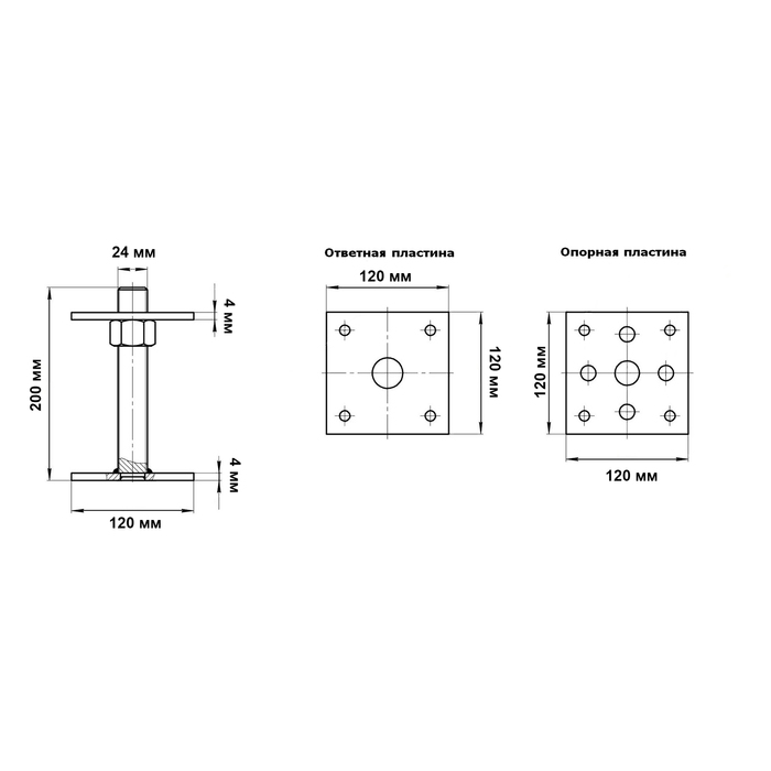 Анкер ЛОМ, регулируемый по высоте, оцинкованный, М24х200х120 мм