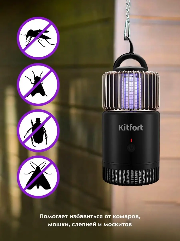 Антимоскитная лампа Kitfort KT-4020 поможет избавиться от назойливых насекомых. Насекомые летят на свет, который излучает светодиодная лампа. Вокруг ламы расположена металлическая решетка, прикасаясь к которой, насекомые мгновенно прекращают свою жизнедеятельность от удара электрическим током.