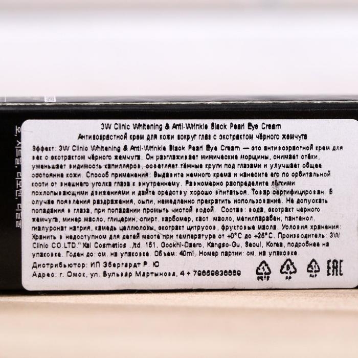 Антивозрастной крем для кожи вокруг глаз 3W CLINIC с экстрактом чёрного жемчуга, 40 мл