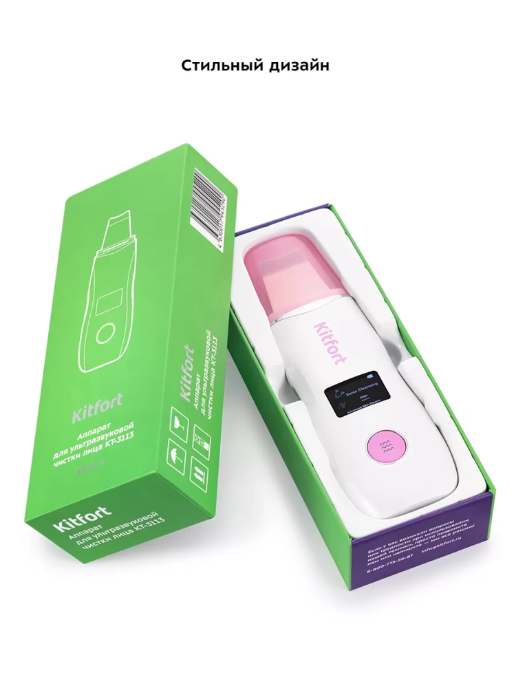 Аппарат для ультразвуковой чистки лица Kitfort KT-3113 предназначен для удаления омертвевших клеток кожи, устранения жирного блеска и черных точек, способствует улучшению кровообращения и лимфодренажу. Ультразвуковая чистка воздействует на кожу 3 способами: • механический – звуковые волны создают давление на ткани, массируют их, усиливая проводимость клеточных структур; • термический – тепло звуковых колебаний разогревает кожу на 1–2 °С, поры расширяются, кожа становится мягкой и податливой, улучшается кровообращение; • физико-химический – во время процедуры на лицо наносится лечебный или косметологический гель. Воздействие ультразвука способствует их проникновению в слои кожи, таким образом, обменные процессы в клетках протекают быстрее. Устройство имеет 5 режимов работы: • ультразвуковая чистка; • ионофорез (ION+); • ионофорез (ION–); • микротоковый массаж; • гальванический лифтинг. Использование аппарата для ультразвуковой чистки лица не уступает по эффективности профессиональным процедурам. Комплексный подход позволяет максимально улучшить состояние кожи: очистить разные слои эпидермиса от загрязнений, а также нормализовать кровообращение и выровнять тон кожи. Устройство имеет небольшие габариты: его удобно положить в сумку, взять с собой в путешествие.