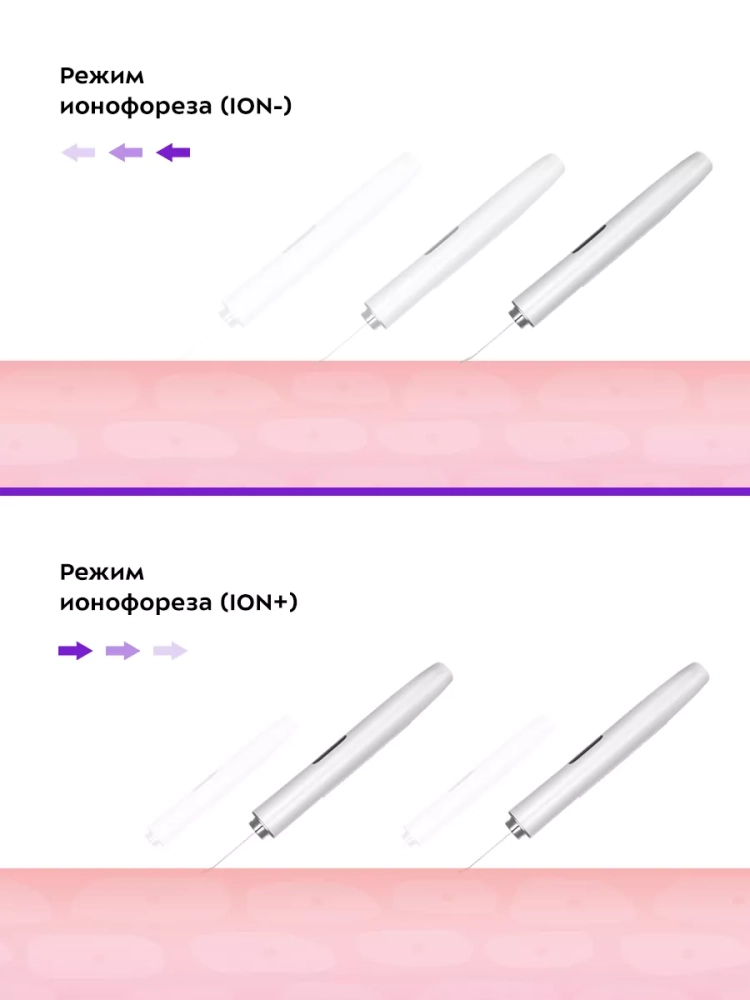 • sonic cleansing with ION- (очистка ультразвуком с отрицательно заряженными ионами);