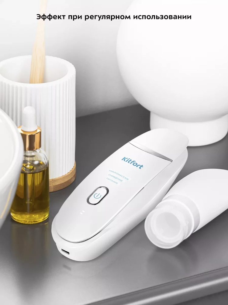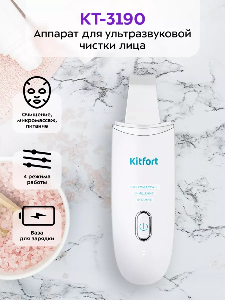 Аппарат для ультразвуковой чистки лица Kitfort KT-3190 предназначен для удаления омертвевших клеток кожи, избытка кожного сала и черных точек, способствует улучшению кровообращения и лимфодренажу. Использование прибора способствует повышению эластичности кожи и увеличивает эффективность от применения питательных косметических средств. Ультразвуковая чистка также помогает сузить поры и выровнять цвет кожи.