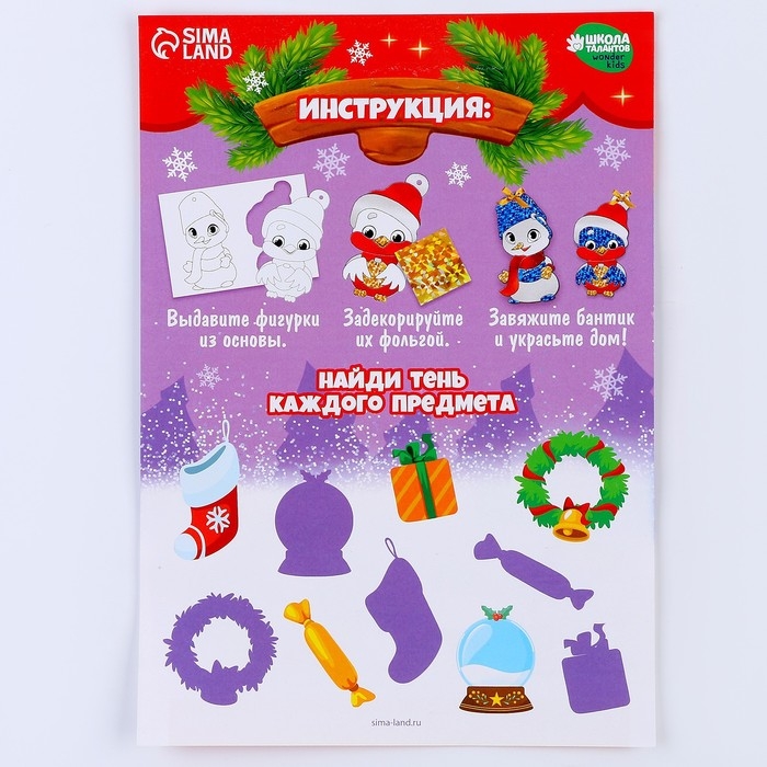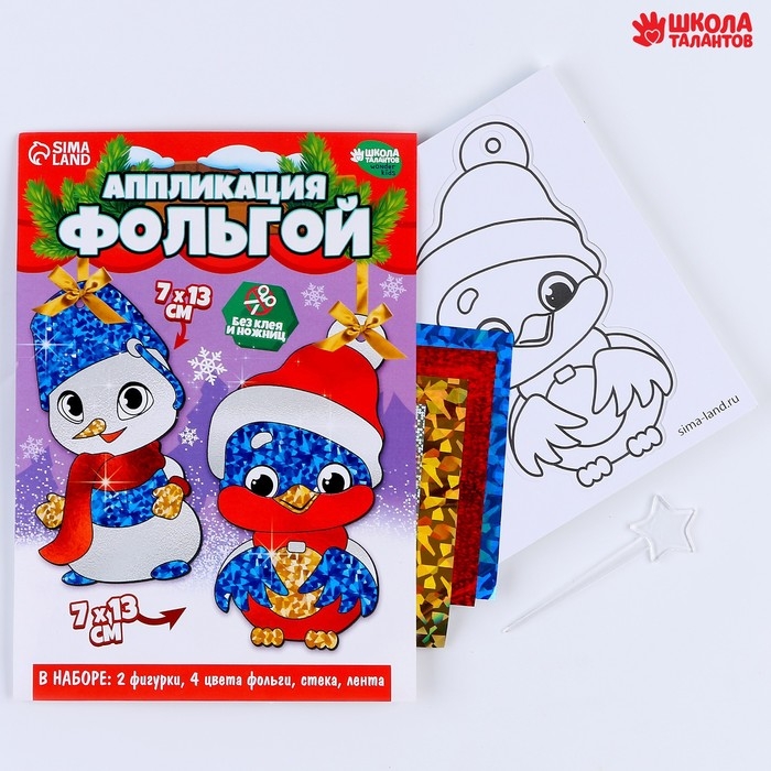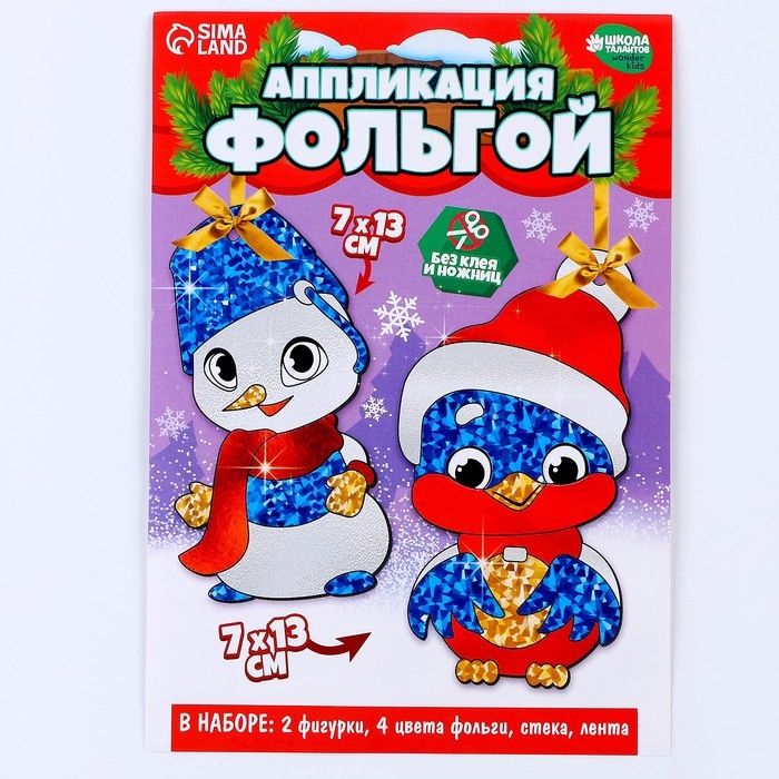Аппликация фольгой на новый год «Снеговик со снегирем», новогодний набор для творчества