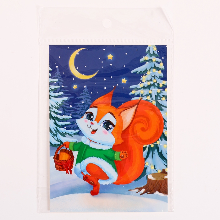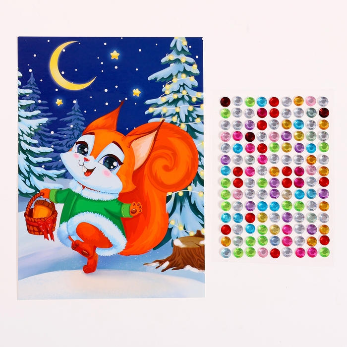 Аппликация стразами на новый год для детей «Белочка», А6, новогодний набор для творчества