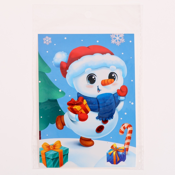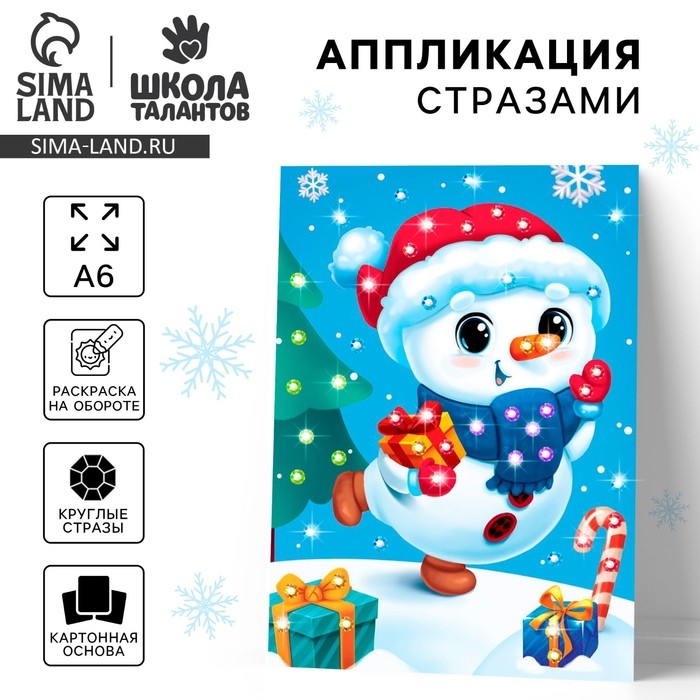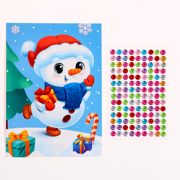 Аппликация стразами на новый год для детей «Снеговик», А6, новогодний набор для творчества
