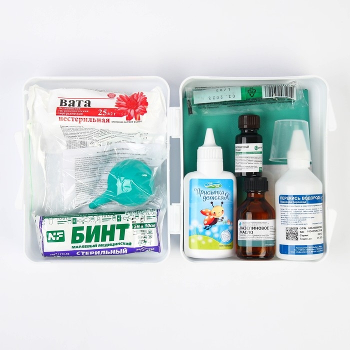 Внимание! Пополняйте аптечку по мере расходования комплектующих или истечения срока их годности. Храните набор при комнатной температуре — 15–25 °С.