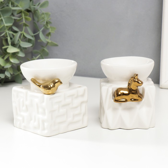 Аромалампа керамика "Золотая фигурка" 9,5х7,5х7,5 см, МИКС