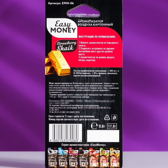 Ароматизатор подвесной 5000 рублей, Strawberry Shaik, клубника, EMN-06