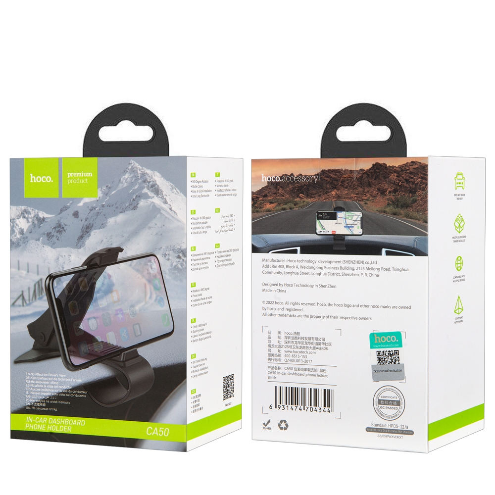 Автодержатель CA50 прищепка HOCO черный