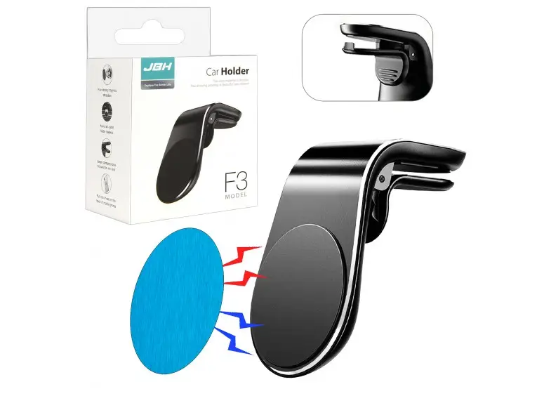Автодержатель F3 магнитный JBH — это удобный и надежный аксессуар для крепления смартфона в автомобиле. Он оснащён мощным магнитом, который обеспечивает прочную фиксацию устройства даже при резких манёврах и неровностях дороги. Держатель крепится на вентиляционную решётку с помощью удобной прищепки, что позволяет быстро установить и снять его без лишних усилий.