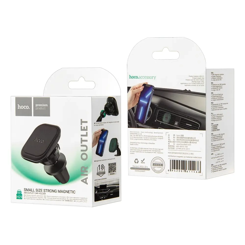Автодержатель H29 магнитный в решетку HOCO черный