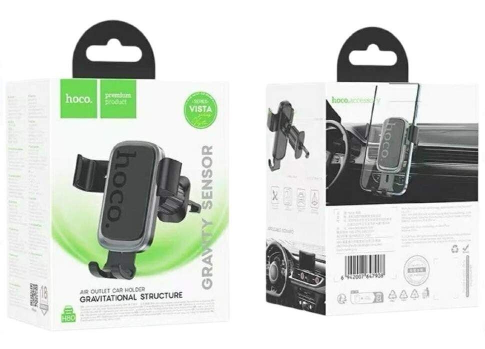 Держатель в автомобиль в воздуховод Hoco H80 с зажимом практичное и надежное решение для водителей, ценящих порядок и безопасность во время вождения. Благодаря устойчивому креплению и регулируемому наклону навигация и общение становятся проще и комфортнее.