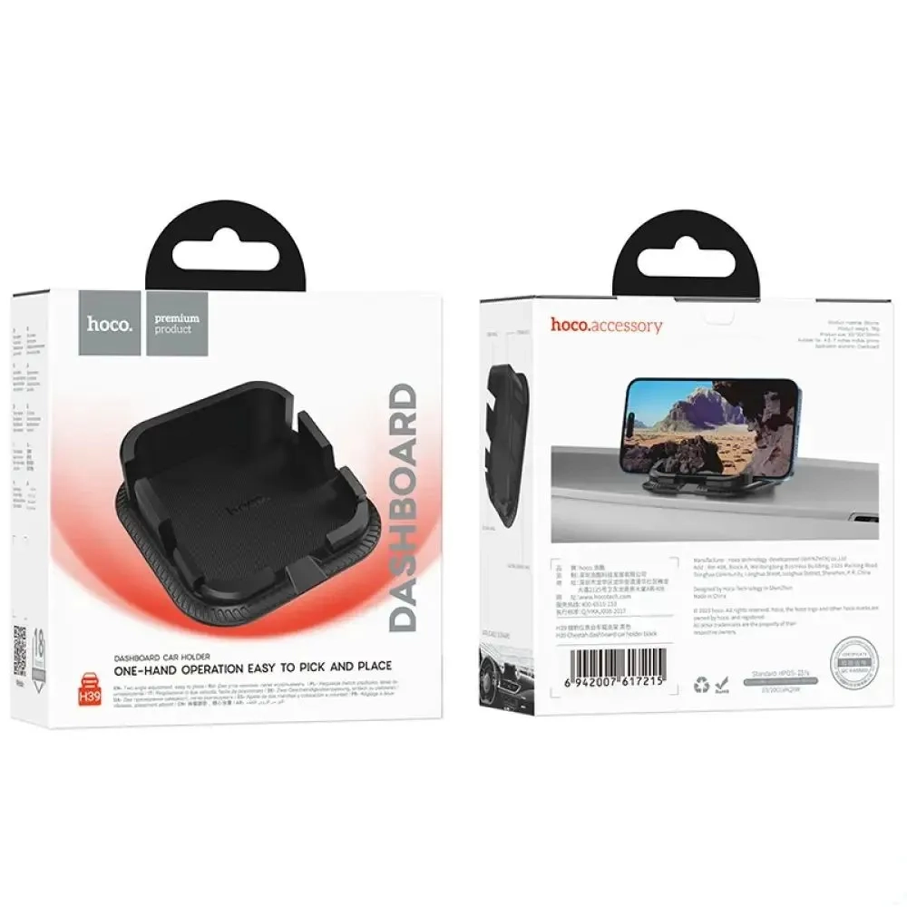 Автодержатель Hoco Н39 – это оригинальное воплощение простых и, одновременно, гениальных инженерных идей и дизайнерских решений. Он поможет легко и надежно расположить смартфон на приборной панели для удобного обзора экрана, а также предоставит некоторые другие возможности. Особенности и преимущества автодержателя Hoco Н39: • Компактные размеры (101×101×32 мм) и небольшой вес (76 г). • Оригинальная форма, выполненная в виде слота для хранения различных мелких предметов. • Практичная, долговечная конструкция из качественного силикона без подвижных деталей. • Установка смартфона всего одной рукой. • Вырезы (пазы) для горизонтальной установки смартфона в одном из двух положений с разным углом наклона. • Возможность установки смартфона в вертикальном положении. • Вырез для свободного доступа к разъему для зарядки смартфона в вертикальном положении. • Совместимость со смартфонами с диагональю экрана 4.5-7 дюймов. • Надежная фиксация на приборной панели автомобиля с помощью качественной клейкой основы. Hoco Н39 – это простое и элегантное решение для фиксации смартфона в автомобиле. Надежная конструкция и качественные материалы гарантируют его длительный срок службы и безопасность устройства.