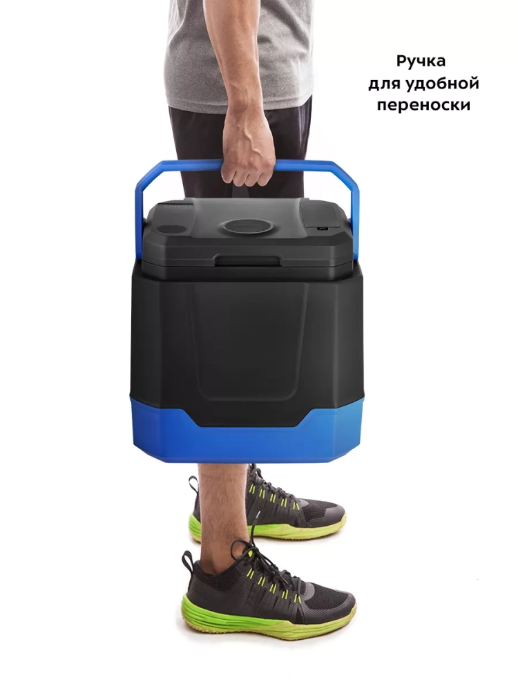 В комплекте к устройству идет съемная разделительная решетка, которая можно использовать, чтобы продукты в камере не перекатывались и не помяли друг друга. На крышке прибора расположена ручка для удобной транспортировки, которая блокирует крышку в закрытом состоянии. Так как система охлаждения/нагрева находится в крышке, то необходимо обеспечить циркуляцию воздуха только сверху и с задней стороны крышки. Это особенно удобно при использовании холодильника в автомобиле, так как рядом с устройством вы можете поставить сумки, пакеты и другие вещи.