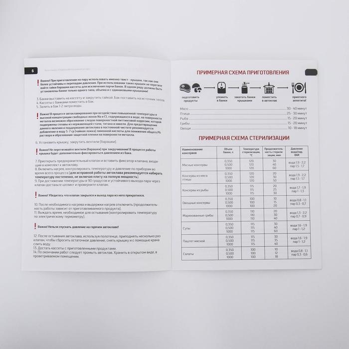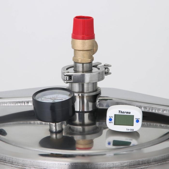 Автоклав предназначен для тепловой стерилизации пищевых продуктов в стеклянной или жестяной таре в домашних условиях. Особая технология крепления обеспечивает безопасную и точную работу: овальная крышка слегка фиксируется двумя вентилями снаружи, а далее — поддерживается давлением изнутри. Автоклав оснащён клапаном аварийного сброса давления, что позволяет избежать превышения допустимых показателей.
