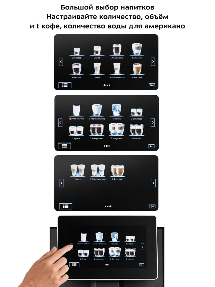 Кофемашина Китфорт KT-7373 позволяет настроить количество кофе, объем и температуру кофе, количество горячей воды для американо, а также время взбивания и подогревания молока. Также вы можете включить режим энергосбережения — через выбранное время, в течение которого кофемашина не будет использоваться, устройство отключится.