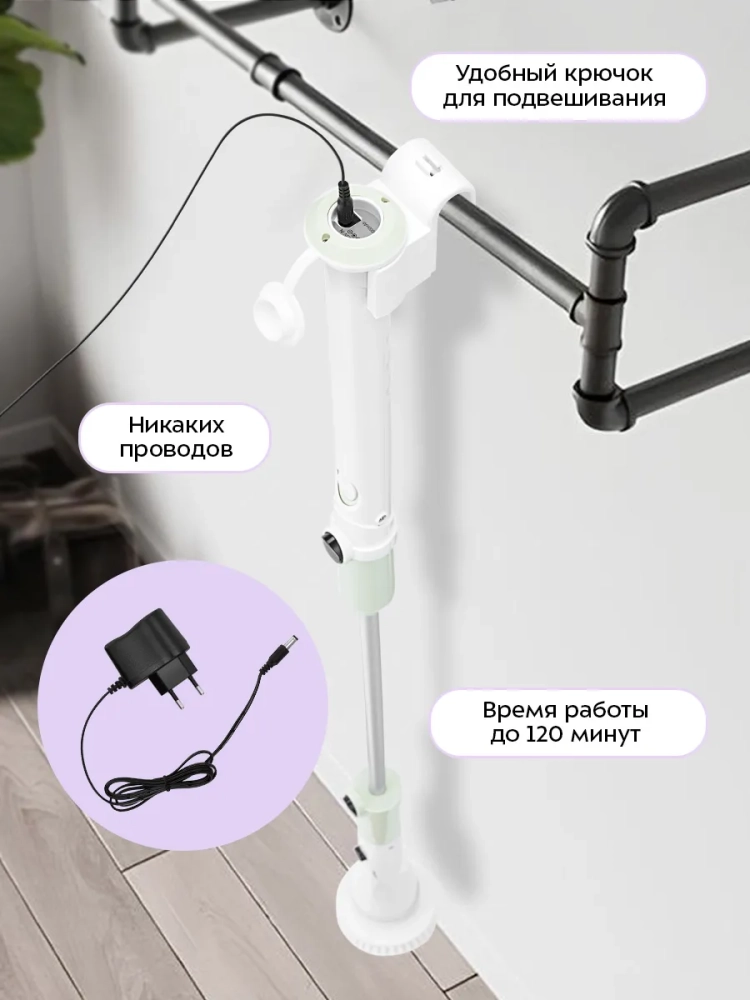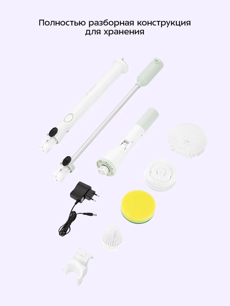 Благодаря работе от аккумулятора не нужно включать вилку в розетку, провода не мешают под ногами. Поэтому щетка для уборки имеет неограниченный радиус действия: от любого уголка квартиры до машины или беседки в саду.
