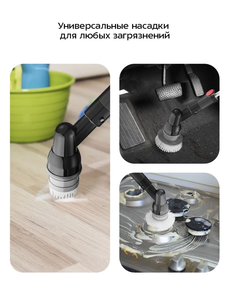 C помощью автоматической щетки для уборки Kitfort КТ-6985 вы можете очистить самые разные поверхности в доме или в автомобиле. При помощи специальных насадок из комплекта автоматическая щетка позволит вам без усилий очистить раковину и плиту на кухне, сантехнику, плитку, плинтуса и многое другое.