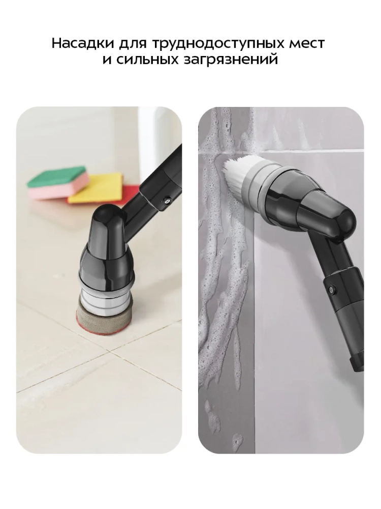 Большая круглая, малая круглая, а также шарообразная насадки подойдут для любых загрязнений. Они будут полезны для чистки пола, стен, подоконников и плинтусов. Конусообразная насадка поможет убраться в углах и труднодоступных местах.