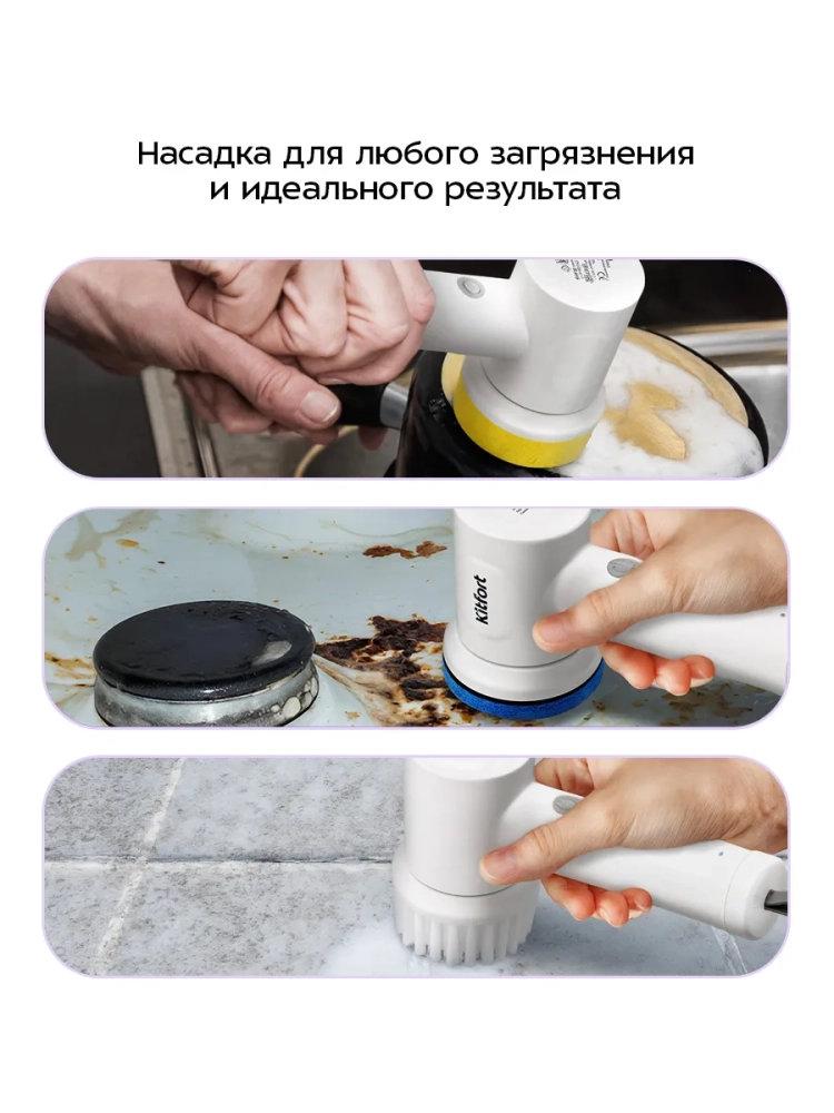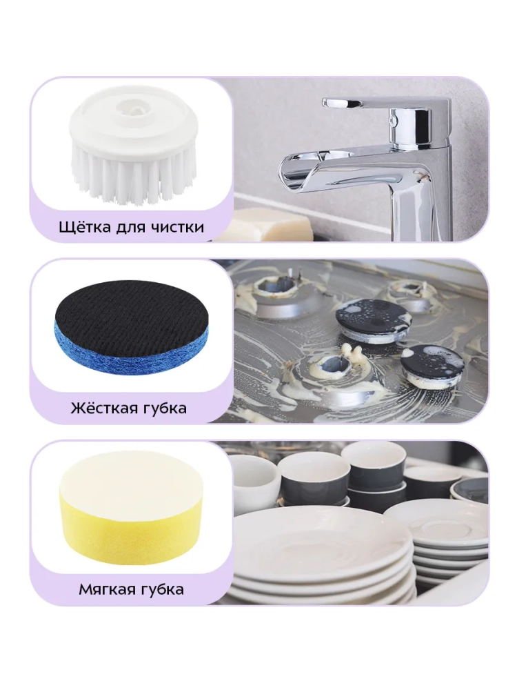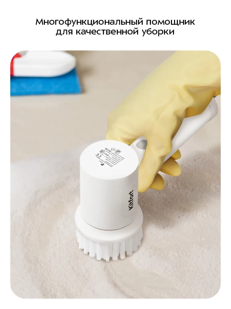 Автоматическая щетка для уборки КТ-6991 - это инновационное электрическое решение для поддержания чистоты в вашем доме и на кухне. Эта электрощетка, оснащенная мощностью 10 Вт, эффективно справляется с различными загрязнениями. Жирные пятна на плите или старые следы на вытяжке больше не проблема благодаря жесткой губке, которая легко очищает сложные участки. Мягкая губка идеально подходит для деликатного мытья посуды и легких загрязнений. Электрощетка имеет круглую насадку, универсальную для чистки пола, стен и окон. Это делает её незаменимой техникой в быту. Удобная ручка обеспечивает комфортное использование электро устройства во время уборки как в доме, так и за его пределами. Работая от аккумулятора, щетка избавляет вас от необходимости подключения к розетке и путаницы с проводами под ногами. Это бытовое устройство предлагает два режима работы: низкую скорость (300 об/мин) для легких задач и высокую скорость (350 об/мин) для более интенсивной уборки ванны. Питание осуществляется через USB Type-C =5 В, 1 А. Эргономичная форма корпуса позволяет удобно держать электрощетку в руке во время использования или хранения благодаря специальной петле. Щетка прибора способна работать непрерывно до 90 минут после полной зарядки за 2,5 часа. Размеры устройства составляют всего 58 х 71 х 178 мм при длине шнура USB Type-C - 0,8 м. Эта техника станет вашим надежным помощником не только на кухне или ванной комнате дома но также пригодится при уходе за автомобилем или садом.