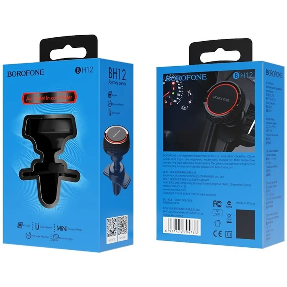 Автомобильный магнитный держатель Borofone BH12 предназначен для установки в дефлекторе воздуховода. Он обеспечивает надёжную фиксацию смартфона и позволяет удобно использовать его во время движения. Обработка поверхности: текстурирование под карбон. Универсальное вращение.