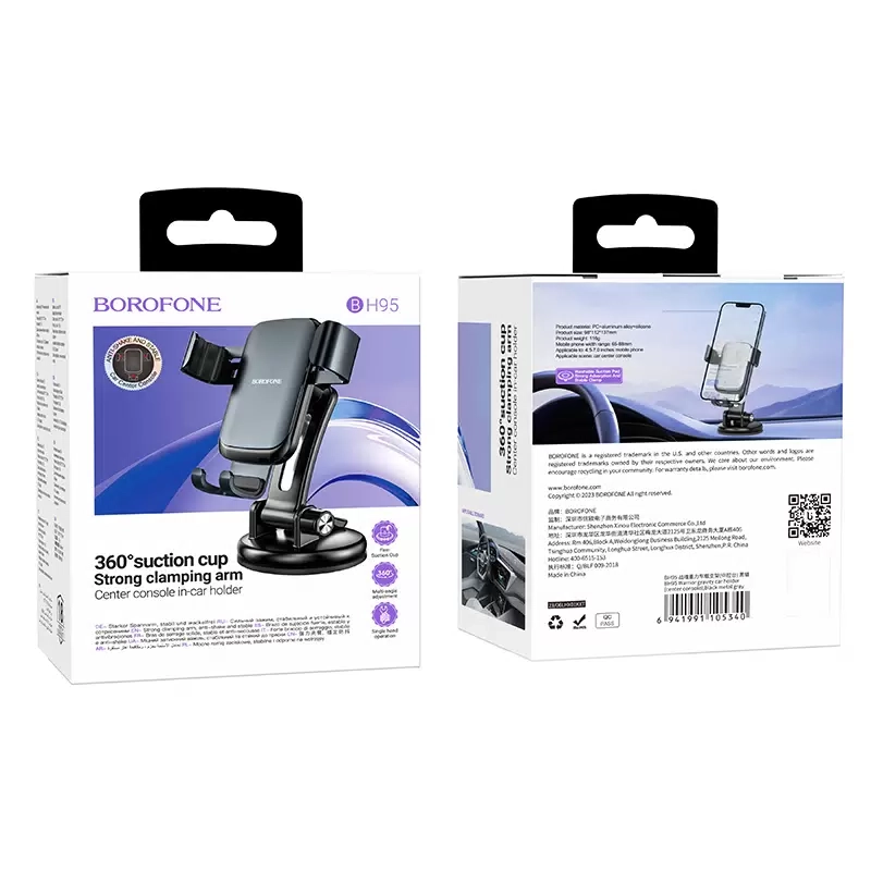 Автодержатель Borofone BH95 подходит для мобильных телефонов с диагональю от 4,5 до 7 дюймов и шириной патрона от 65 до 88 мм. Это позволяет использовать его с большинством современных смартфонов.